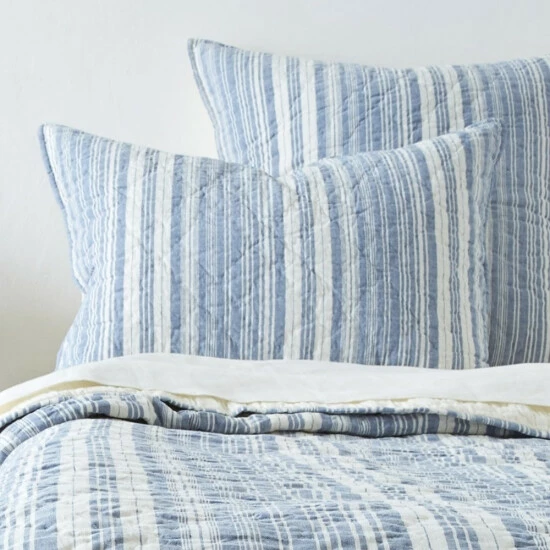 Welcome the winters in style with this warm and cozy Allen quilt. Made of breathable cotton and linen material for long-lasting comfort, this quilt features a striped pattern in white and blue shades that complement neutral-toned walls and elevate the aesthetic appeal of your modern home.