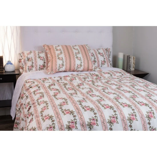 This French Country style duvet cover features gorgeous floral patterns with pink striping.