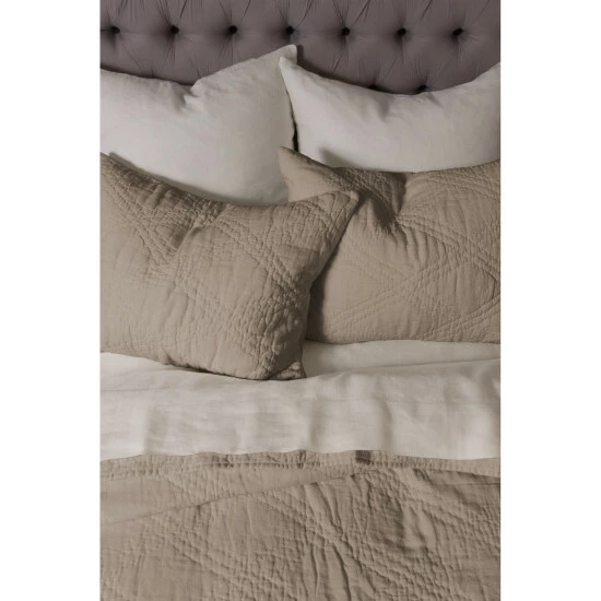 To complement any muted tones, opt for the box quilted linen Barlona Quilt.