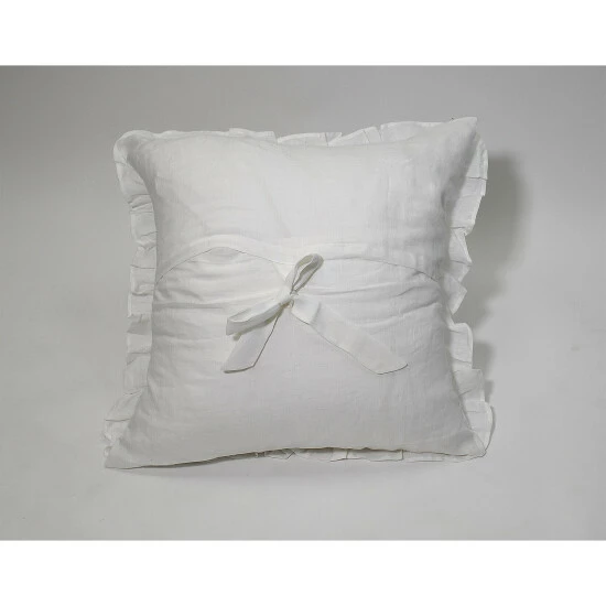 White Linen Duvet Cover with ruffles and ribbon and long ties. Made of 100% LinenCare Instructions: Machine Wash Cold, Gentle Cycle. Do not use Bleach. Tumble Dry Low or Line/Flat Dry. Do not Dry Clean.We make every effort to display color accurately in our images. However, digital screens and monitors may display color differently. We cannot be responsible for color variations between our product and your screen.