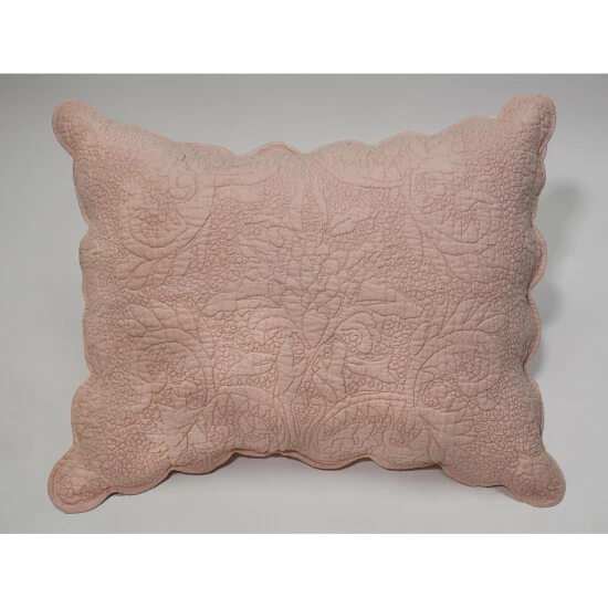 Β The intricate quilting detail on the Brady quilt guided by hand to achieve the delicate raised scroll motif. 100% natural linen on the front and back and is finished with a scalloped edge.