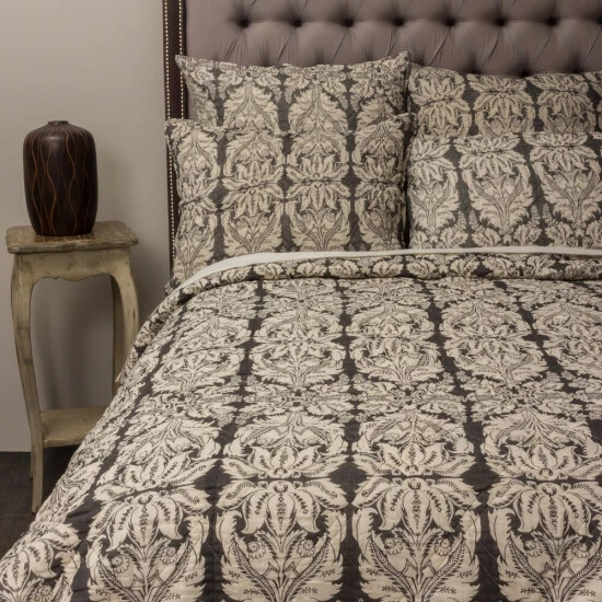 With a sophisticated damask pattern in soft grey and off-white, this Brayson quilt gives any decor a touch of antique elegance. The linen fabrics provides plush softness.
