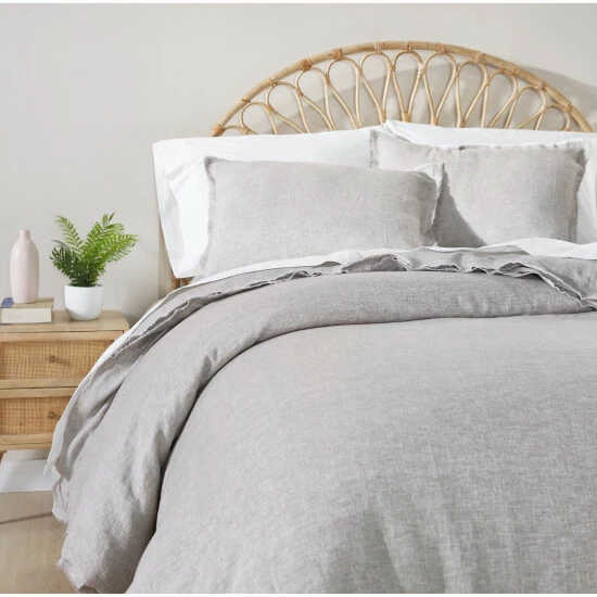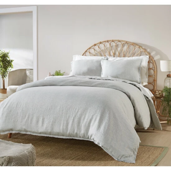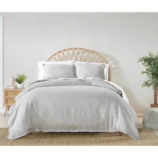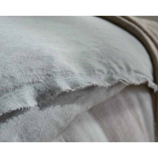 Brisben is constructed of washed linen with a double needle stitched, raw torn edge flange for a touch of deconstructed sophistication.