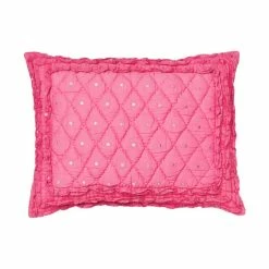 A charming Hot Pink cotton sham, with diamond stitching and ruffle edges. Insert not included. Standard sham is 20×26 inches, Euro sham is 26×26 inches King sham is 20×36 inches.