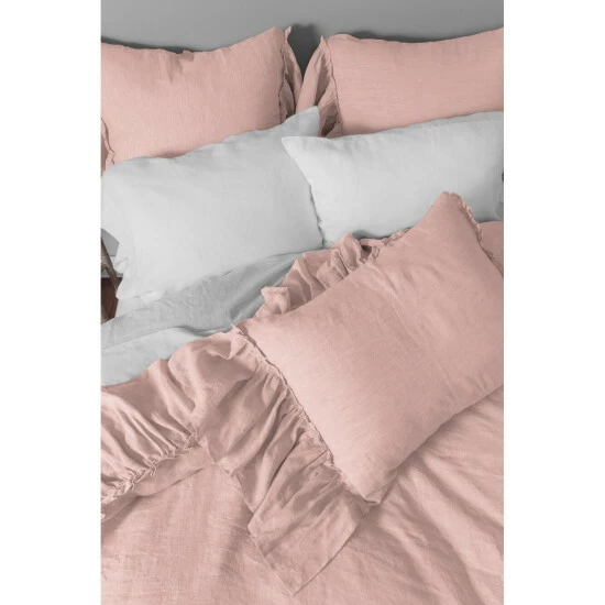 Surrounded by 10 additional inches of romantic ruffles and available in 10 colors of washed linen, the Chase Duvet cover is the perfect selection to achieve an idyllic ambience.