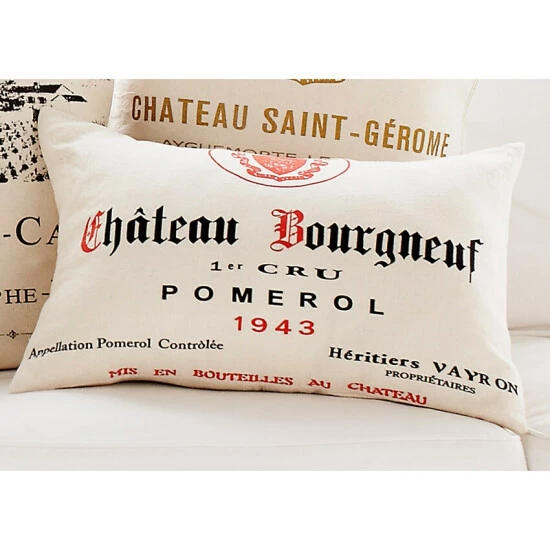 Add a French-inspired touch to any piece of furniture with this’Chateau Bourgneuf’ wine printed pillow. This decorative pillow hasa printed design against a neutral background that will complimentalmost any home decor style.