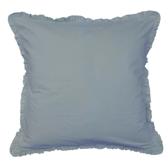 Enhance the comfort of your bedroom with additional pillows. If you do not like a boring look this is the perfect sham to have. This sham features a ruffled trim that can add color and personality. Euro sham is 26 x 26 inches long. Care Instructions: Machine Wash Cold, Gentle Cycle. Do not use Bleach. Tumble Dry Low or Line/Flat Dry. Do not Dry Clean. 100% cotton. Insert not included. Available is smokey blue and taupe.