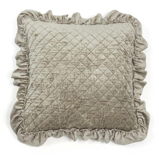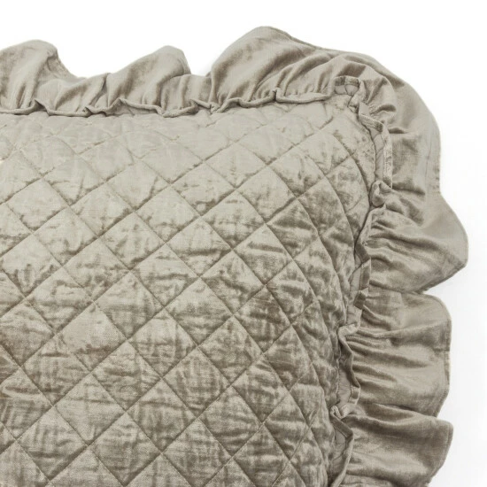 Enjoy this velvet hand quilted diamond stitch sham, with Β Β 10″ ruffles on the left and right sides of the sham.Β