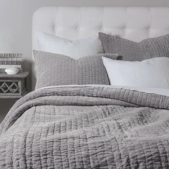 Add a touch of elegance to any room with the beautiful Evan hand quilted velvet quilt. They’re made with intricate hand quilting, and prewashed for extra softness. Available in Twin, Queen, and King. Machine washable for easy care