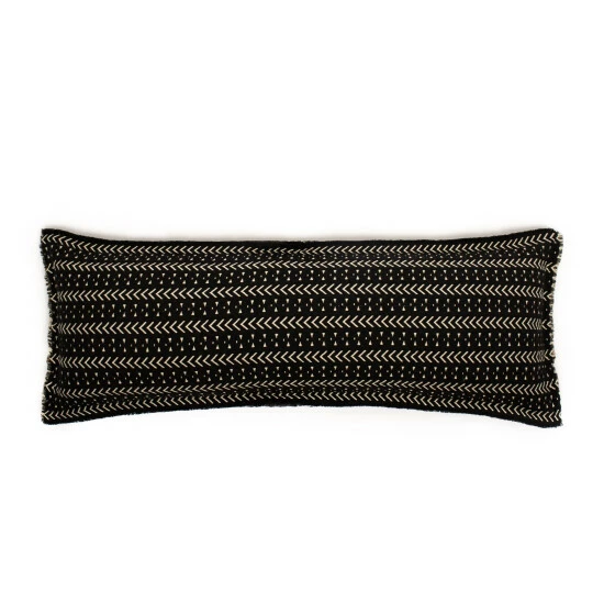 Inspired by traditional African mud cloth motifs, and constructed of soft cotton this XL Bolster makes a statement . All four edges are finished with a hand frayed eyelash edge for a rugged, collected feel.