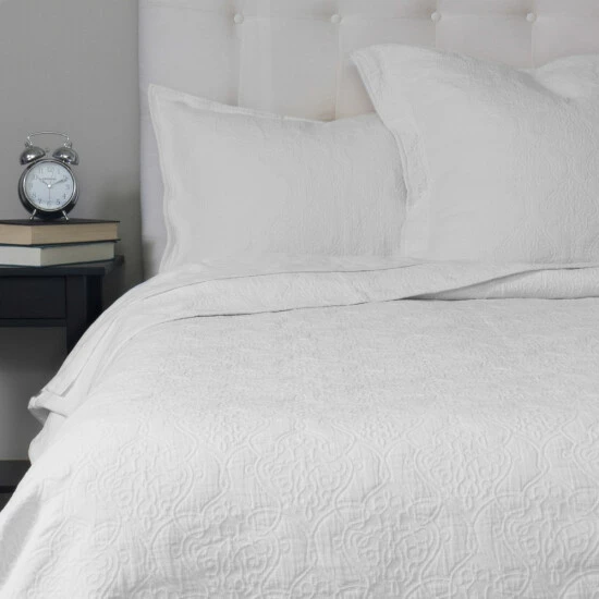 Matelasse (mat-la-SAY) is a weaving or stitching technique yielding a pattern that appears quilted or padded. Matelasse may be achieved by hand, on a jacquard loom, or a quilting machine. It is meant to mimic the style of hand-stitched quilts made in Marseilles, France. It is a heavy, thick textile that appears to be padded, but actually has no padding within the fabric.