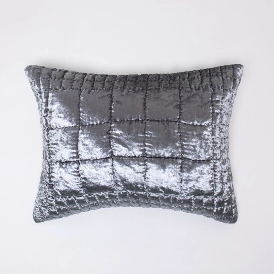 This lustrous velvet is backed with a contrasting cotton voile and hand quilted in a block pattern for exceptional softness and an eclectic style. Shams are self-backed.