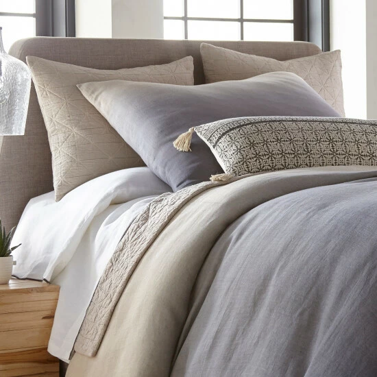 Harp is where artisanal meets sophistication. 100% fine natural linen is hand dip-dyed to create a dramatic ombre to rich steel blue. Shams are dip dyed on front and back, duvet is backed with solid natural linen and finished with hidden button closure. The natural linen fabric is hand dip-dyed to create a Steel Blue ombre effect that makes it a must-have item for your household buy today to complement your home!