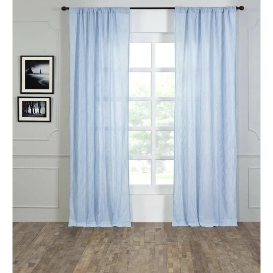 - Rod-pocket, single curtain panel made of 100-percent cotton with seersucker striping for fresh, casual appearance