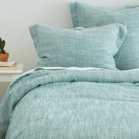 Jaicee is constructed of fine linen and cotton fibers woven together in a chambray, basket weave style that produces a rich mottled appearance. This duvet cover can bridge a wide variety of styles from casual to formal depending on the setting and paired elements. Finished with a 2 inch flange.Β