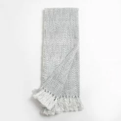 Spend a warm evening on the sofa with this cozy throw. This comfortable cotton throw features a geometric pattern in grey and white and has fringe accents around the hem for added style.