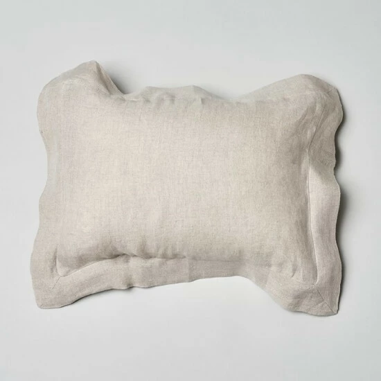 Katalene is constructed of 100% fine linen front and back, and machine quilted in a tight block pattern. The scale of the pattern provides for a structured finish that takes on a modern edge.