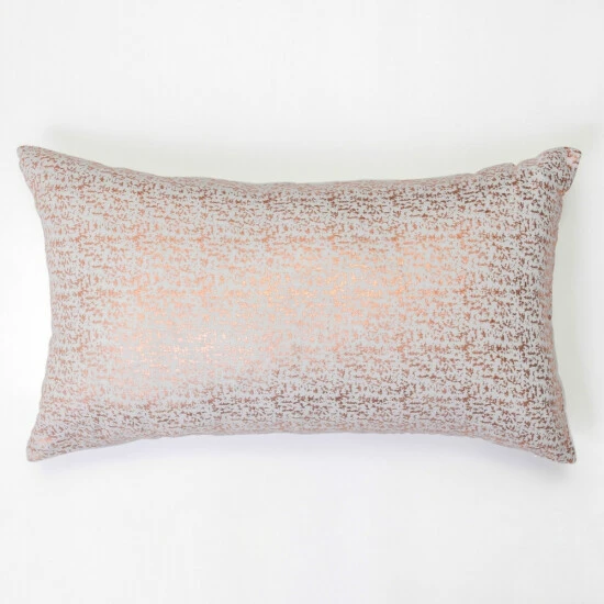 Metalic rose gold flecked pillow on linen base. The pillow cover is removable for easy care. Machine washable, tumble dry. Do not use bleach.