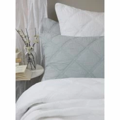 Fine cotton voile is triple embroidery quilted in an exaggerated diamond pattern for a subtle graphic effect with a delightfully soft hand.