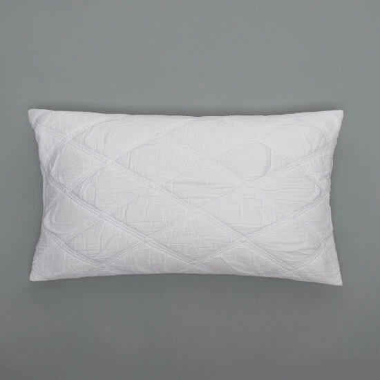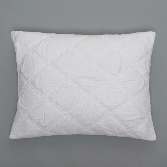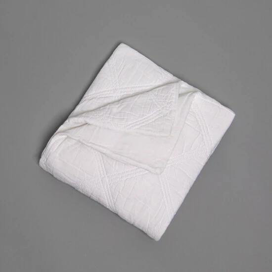 Fine cotton voile is triple embroidery quilted in an exaggerated diamond pattern for a subtle graphic effect with a delightfully soft hand.
