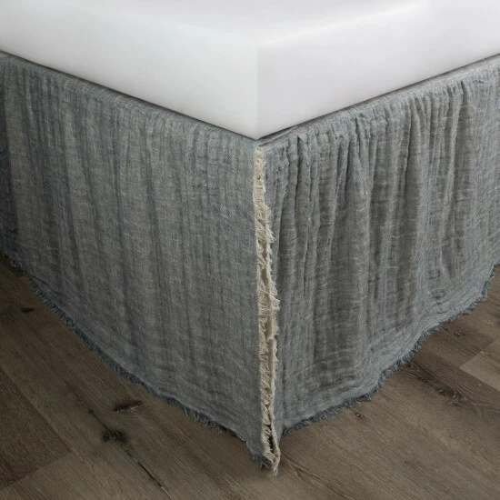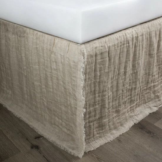 European inspired Kenton linen bed skirt is tailored with a relaxed drape and eyelash edge for inviting texture. Bed Skirt comes as 3 Panels, in drop length + 3 inch deck, and may require pins ( Pins are not included)