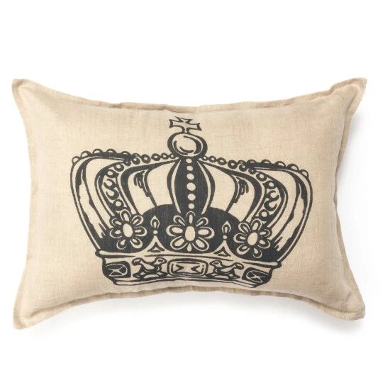 Add a regal touch to your home with this King Crown bolster pillow. This pillow showcases a crown print against a pure linen cover.