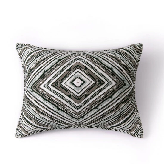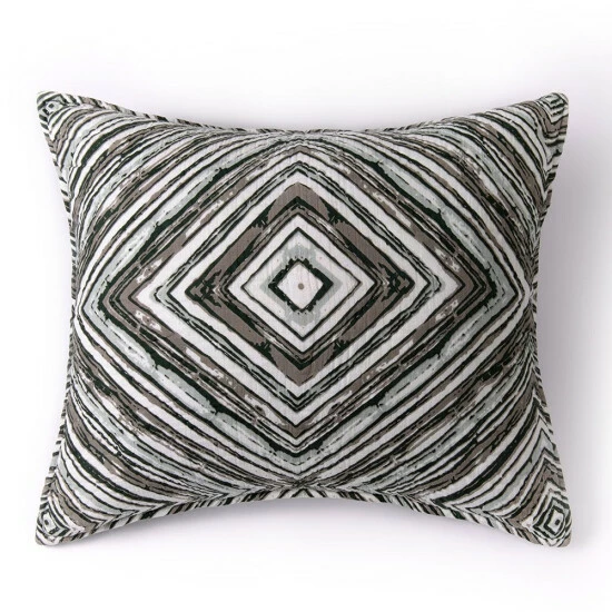 Printed on a supple cotton cloth and hand quilted the Kingsley quilt adds coziness and drama. The bold pattern of concentric diamonds can easily bend stylistically between Mid-Century Modern, Tribal and Contemporary depending on the setting and companion pieces.Β