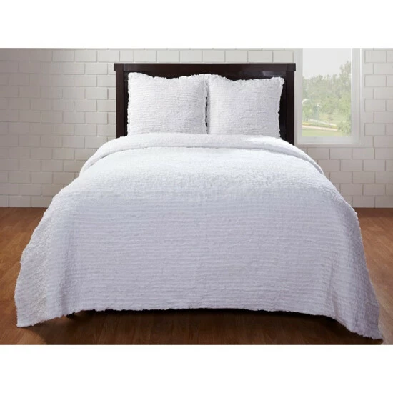Flirty and feminine, the ruffles of this soft duvet cover set playfully spread across a delicate white surface. The solid ruffly set is composed of machine washable cotton.