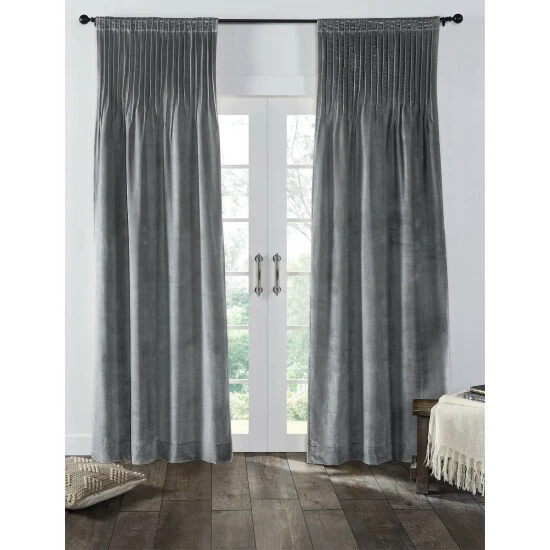 Β Nearly luminous, this curtain panel is constructed of rayon velvet and detailed with fine pin-tucked pleats for a fresh take on tradition.Β