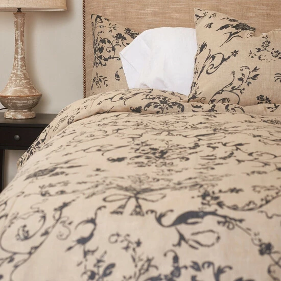 Enjoy this French inspired duvet cover that has a floral print over a natural linen base, with straight edges. Button closures allow you to place a down comforter insert inside the duvet cover for added warmth and comfort.Β