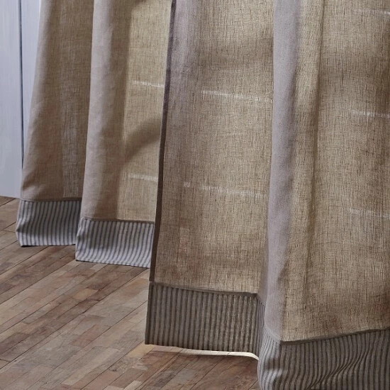 Make any room in your home feel contemporary or elegant with this perfect curtain panel. The Curtain Panel is a Linen fabric. Color:Natural and Blue stripe on the bottom Enclosure: Rod Pocket