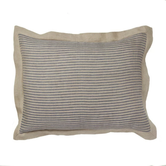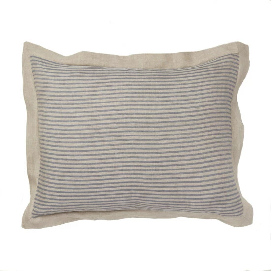 This steel blue stripe linen sham will bring color to any bedroom set or living area. Insert not included.