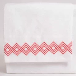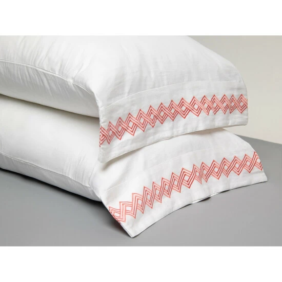 Β A modern twist on the classic chain, embroidered on a crisp 400 thread count cotton sateen sheeting cloth. The embroidery motif runs along the top hem of the flat sheet and edge of each pillow case. Fabric Content: 100% Cotton Sateen (400 TC)