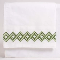 Β A modern twist on the classic chain, embroidered on a crisp 400 thread count cotton sateen sheeting cloth. The embroidery motif runs along the top hem of the flat sheet and edge of each pillow case. Fabric Content: 100% Cotton Sateen (400 TC)Twin Dimensions: