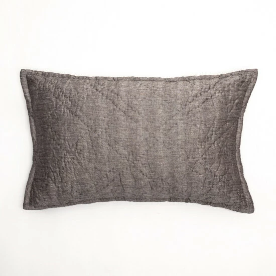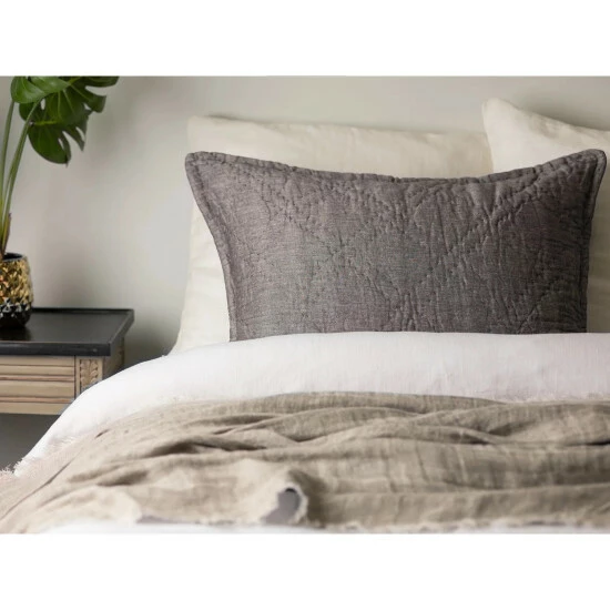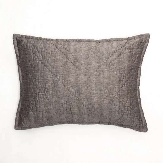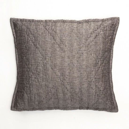Fine linen and cotton are woven together in a subtle herringbone pattern and then quilted by hand in a double diamond pattern for a collection that can transcend a variety of styles.Β