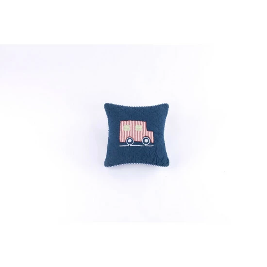 This throw pillow is suitable for kids due to it’s small size and colorful nature. This pillow features a red and white striped car on a blue base with a striped border.