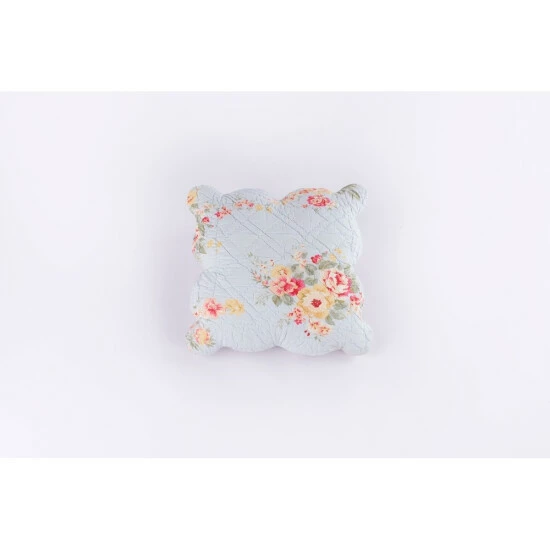 This throw pillow features vibrant and colorful flowers on a light blue base. The pillow cover also has scalloped edges to give a more unique look and design.