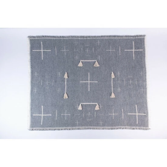 Cross pattern stitching adorn this throw as well as other embroidered patterns.Β