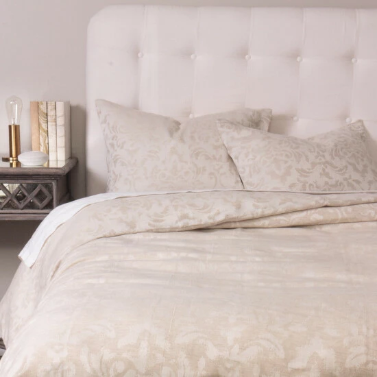 Our Olivia Duvet Cover is enhanced by its light body and natural drape. Impeccably knife edged duvet cover and shams pair with button enclosures to exude elegance.Β