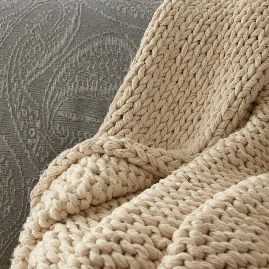 Oversized cable knit in the Knitted Throw in wool/viscose reiterates the likeness of cable with added softness of a favorite hand made sweater. Available in 2 styles, our perin throw or our gaige throw.