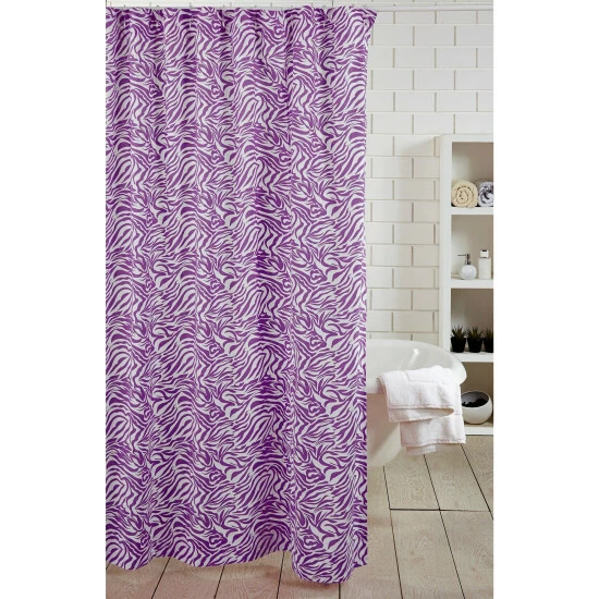Add a playful touch to your bathroom decor with this spunky shower curtain. This shower curtain features a bright purple and white zebra print.