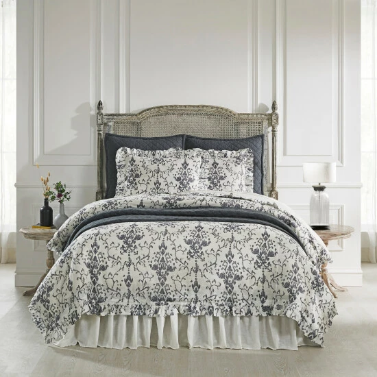 Printed on a fine linen/cotton blend, the Riva duvet cover is inspired by antique European drawings. With a subtle timeworn air to the print and finished with a 3β ruffle it is quintessentially provincial.