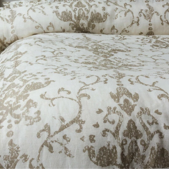 Add comfort and style to your bed with the Risa Cotton and Linen Duvet Cover. This duvet features a cotton and linen construction with a beautiful damask pattern in beige and white that you will be sure to love.