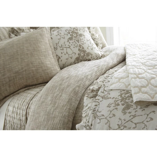Add an elegant look to your bedroom with the Risa Cotton Linen Sham. This sham features cotton and linen construction with a beautiful filigree pattern in grey and beige that you will be sure to love.