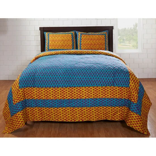 This beautiful quilt set can be added to any bedroom for maximum comfort and style. The set comes in a reusable fabric bag for all types of carrying needs and is perfect for sleepovers.