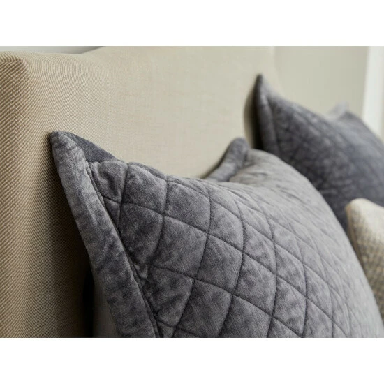 Β Samoya is constructed of a rich rayon velvet, quilted in a classic diamond pattern and bound with self-piping for a formal and lustrous aesthetic.