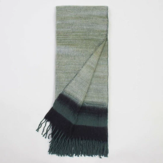 This throw is first woven then slightly felted for a lush and cozy feel. While mainly monochromatic in a rich color, the field is feathered with a mΓ©lange of tones near the some hue to add interest, then each end is finished with a boldly colored stripe and twisted tassels for a casual finish.Β