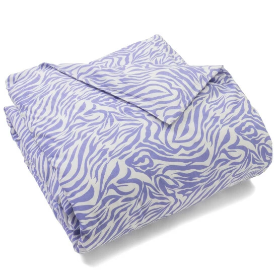 Add a playful twist to your teen’s bedroom with this Purple zebra striped duvet cover, for a splash of color. Twin is 66 x 88, Queen is Β 88 x 96 and King is 107 x 96 inches. 100% Cotton. Button closures allow you to place a down comforter insert inside the duvet cover for added warmth and comfort. Care Instructions: Machine Wash Cold, Gentle Cycle. Do not use Bleach. Tumble Dry Low or Line/Flat Dry. Do not Dry Clean.