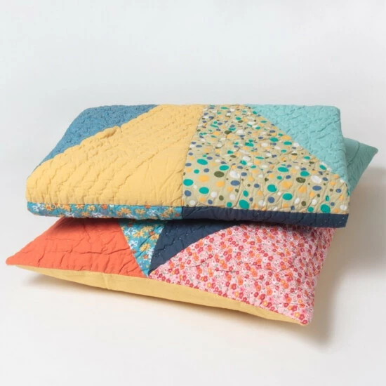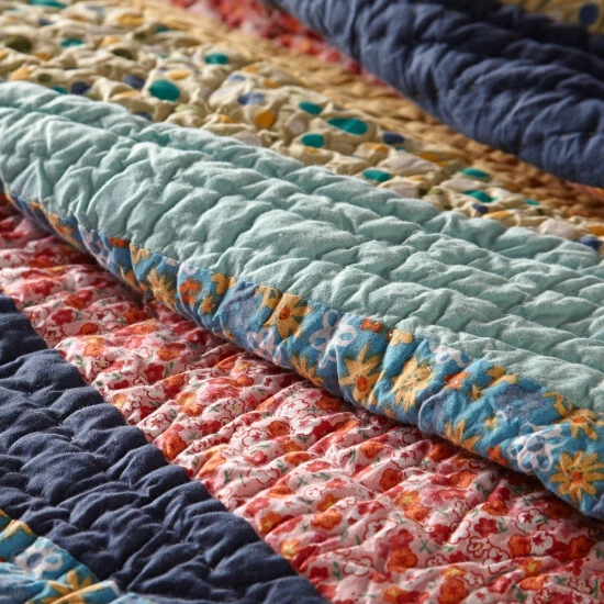 A modern patchwork quilt is reimagined in vintage-inspired colors for our cotton Quilt.Β