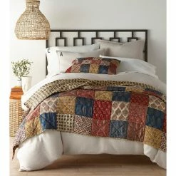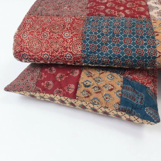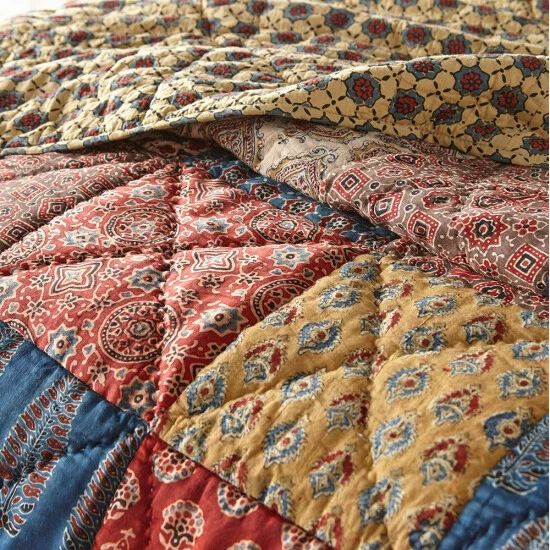 This Bohemian patchwork quilt is made up of a kaleidoscope of Jaipuri block print inspired patterns in a mix of fine cotton and lustrous rayon.Β